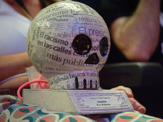 Acte de reconeixement públic al dramaturg Tomàs Verdú, guanyador del Premi Ciutat d’Alcoi de Teatre 2025 amb el text Les Carcasses. En paraules del jurat: «aquesta obra destaca per la seua originalitat, per la seua rabiosa actualitat, pel seu humor intel·ligent i per la perfecta conjugació entre fons i forma». Escrita des d’una sana llibertat de composició, és una comèdia costumista que situa tres personatges de generacions diferents compartint pis, en una convivència forçada que és un bon pretext per abordar, amb sàtira mordaç, la crisi generacional, la de l’habitatge i la de la globalització que homogeneïtza i precaritza les persones.